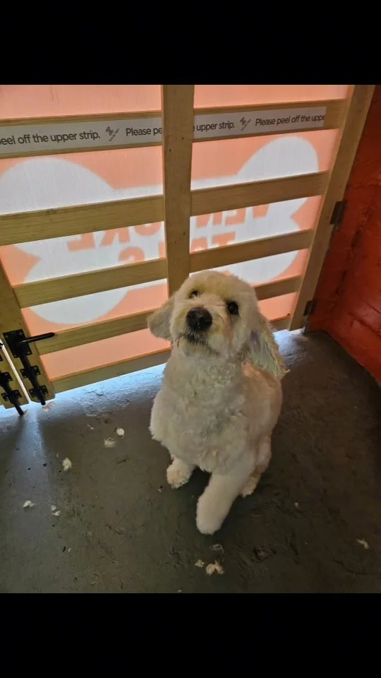 Treat your furry friend to our Fluff & Buff grooming: a pampering session with a bath, dry, brush, clip, tidy, and finishing touches for a fresh and fabulous pup!